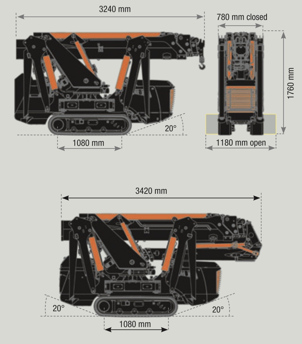 - Max. Hubhöhe mit Jib: ca. 16,0 – 17,0 m (je nach Jib-Winkel)
